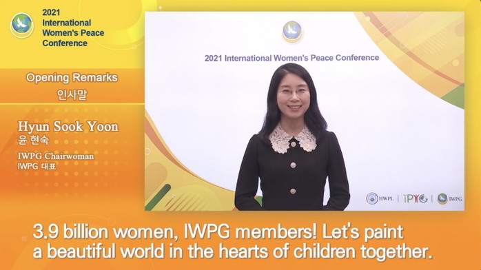 윤현숙 IWPG 대표는 인사말을 통해 "IWPG는 세계평화 실현을 위해 평화의 날개가 되어 HWPL과 함께 달려왔다. 아무도 예상치 못한 팬데믹 상황에서도 우리의 평화활동은 멈추지 않았다"며 "모든 활동을 비대면 온라인 활동으로 전환하고, 지속가능한 평화를 위해 전 세계 IWPG 회원들과 소통하며 지금도 최선을 다하고 있다. 39억 여성 IWPG는 한마음 한뜻으로 HWPL과 함께 세계평화실현을 완수할 것"이라고 약속했다.