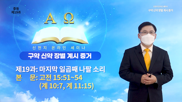 (사진=신천지예수교 시몬지파 남산교회 김대준 담임강사가 중등세미나 제19과 '마지막 일곱째 나팔 소리' 강의를 본격 시작하고 있다)