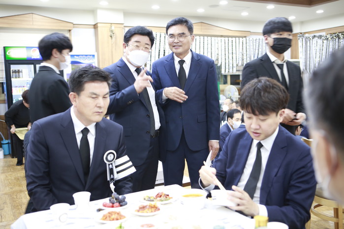 [세계타임즈 이진화 기자]국민의힘 이준석  대표는 2일 오후 11시께 허은아 수석대변인과 함께 김태호 국민의힘 의원의 부친상  빈소가 있는 경남 거창군 장례식장을 찾아 조문했다.