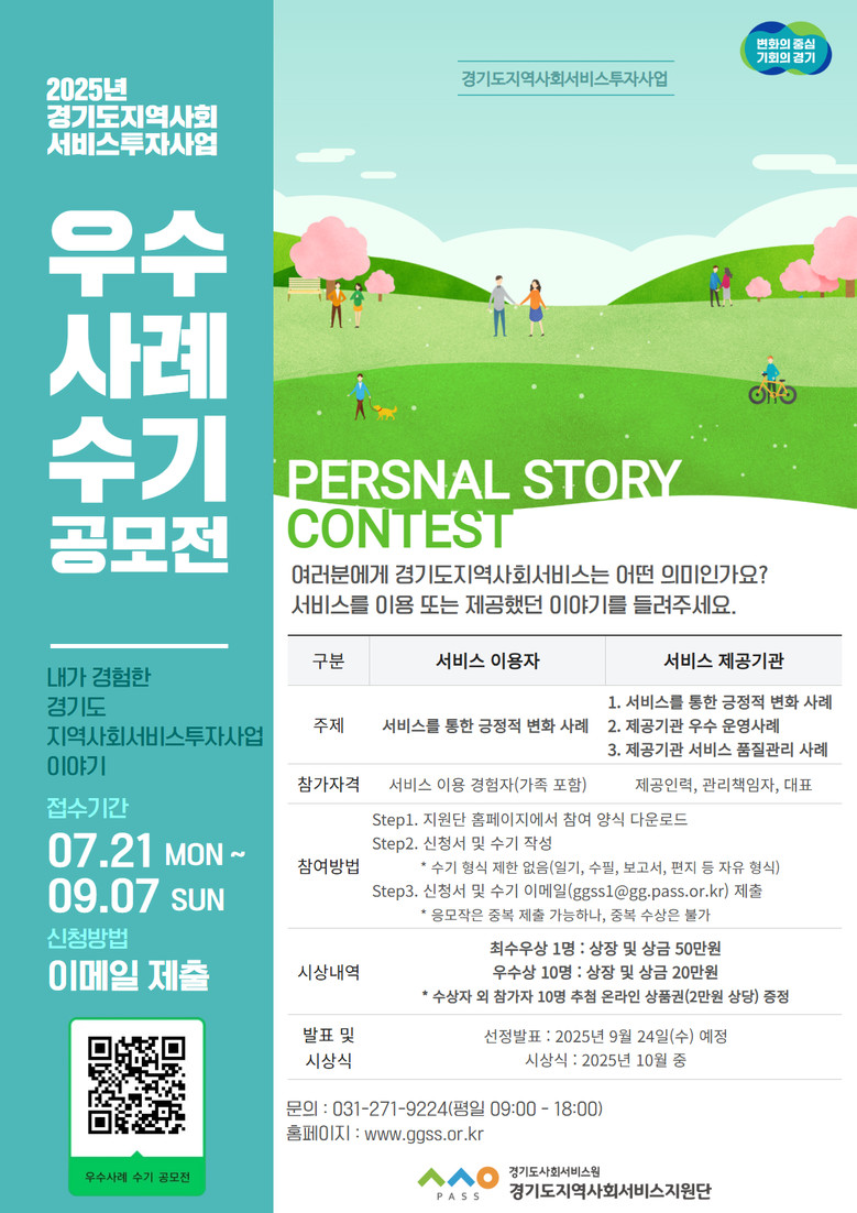 | ▲2025년 경기도지역사회서비스투자사업 우수사례 수기 공모전 포스터.(사진=경기도사회서비스원) |