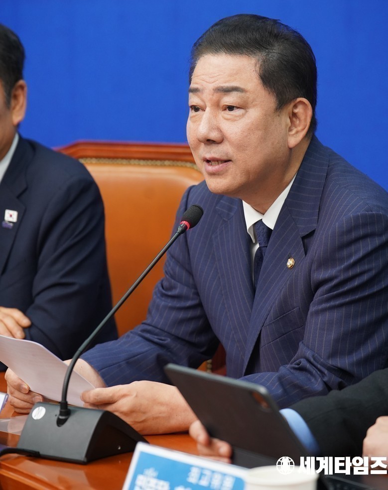 더불어민주당 '김병기' 원내대표가 15일 서울 여의도 국회에서 열린 최고위원회의에서 발언하고 있다.