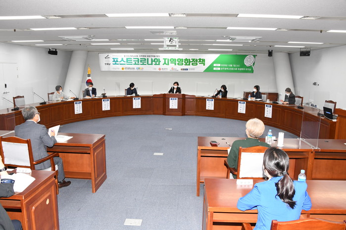 [광주=세계타임즈 손권일 기자] 광주시의회(의장 김용집)는 7일 오후 2시 시의회 예결위회의실에서 ‘포스트코로나와 지역영화정책’이라는 주제로 포럼과 토론회를 개최했다.