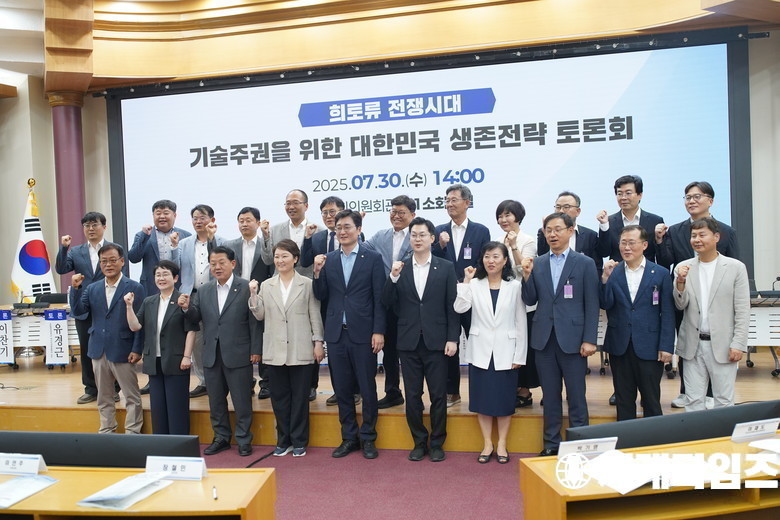30일 서울 여의도 국회 의원회관에서 열린 '희토류 전쟁시대, 기술주권을 위한 대한민국 생존전략 토론회'에서 참석자들이 화이팅을 하고있다.