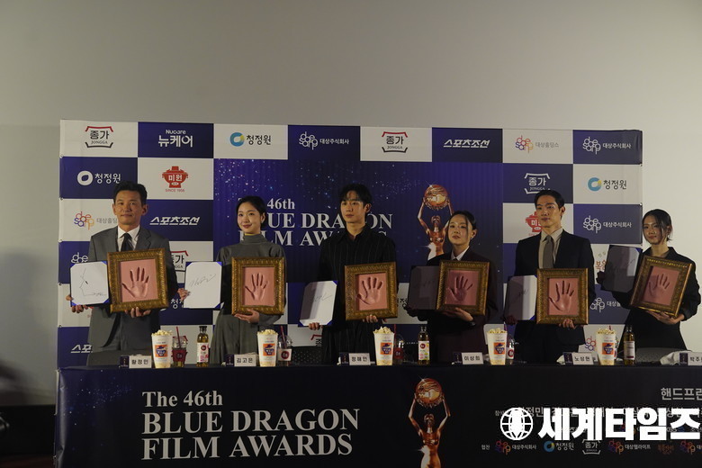 29일 오전 서울 영등포구 여의도 CGV에서 ‘제46회 청룡영화제 핸드프린팅’ 행사가 열린가운데 전년도 수상자 황정민, 김고은, 정해인, 이상희, 노상현, 박주현이 가 참석해 포토타임을 갖고있다.
