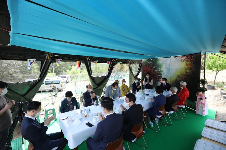 | ▲ 참석인사들이 차를 마시며 담화를 나누는 모습 |