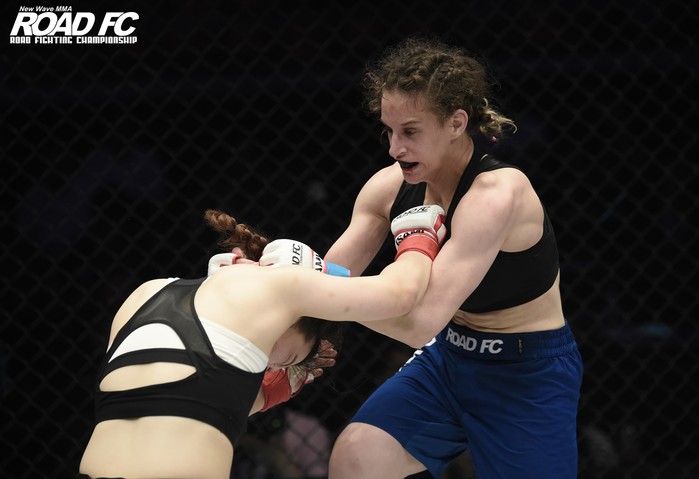 [세계타임즈 김인수기자] 그녀는 워싱턴주 3위, 전미 대회에서 7위 1회, 8위 1회를 할 정도로 미국에서 실력이 출중한 레슬링 선수로 활약했다. 약 4년 전 한국에 와서는 원주 로드짐에서 ‘ROAD FC 밴텀급 前챔피언’ 김수철(28, 로드짐 원주MMA)의 지도를 받아 종합격투기 선수 생활을 병행하고 있다. 대체 선수로 박하정(21, 제주 팀더킹)과 대결하는 그녀는 ROAD FC 3연승에 도전함과 동시에 파이트머니 기부 의사를 밝혔다.