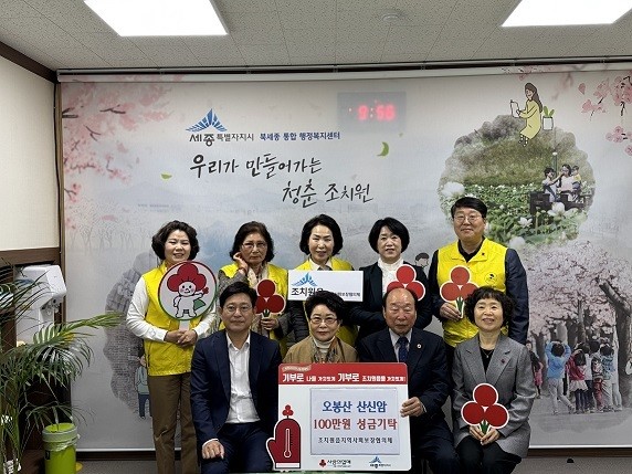 [세종 세계타임즈=이채봉 기자] 세종특별자치시 조치원읍지역사회보장협의체(공동위원장 김병호·이재경)가 지난 2일 오봉산 산신암(주지 김향란)에게 300만 원을 기탁받았다.