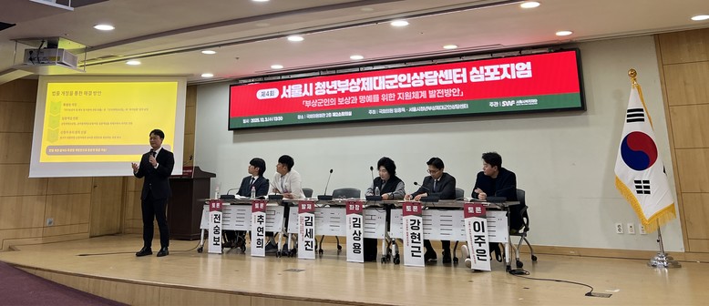 ○ 이형일 변호사는 ‘청년부상제대군인들의 복합적 문제 해결을 위해 서울시와 같은 지방자치단체 차원의 조직을 중심으로 한 공공 및 민간 자원의 협력·지원 체계 구축’을 제안하였다.