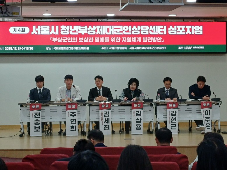[서울 세계타임즈=이장성 기자] 서울시복지재단이 청년부상제대군인에 대한 사회·제도적 지원과 보훈 정책 발전 방안을 모색하기 위한 심포지엄을 개최했다.