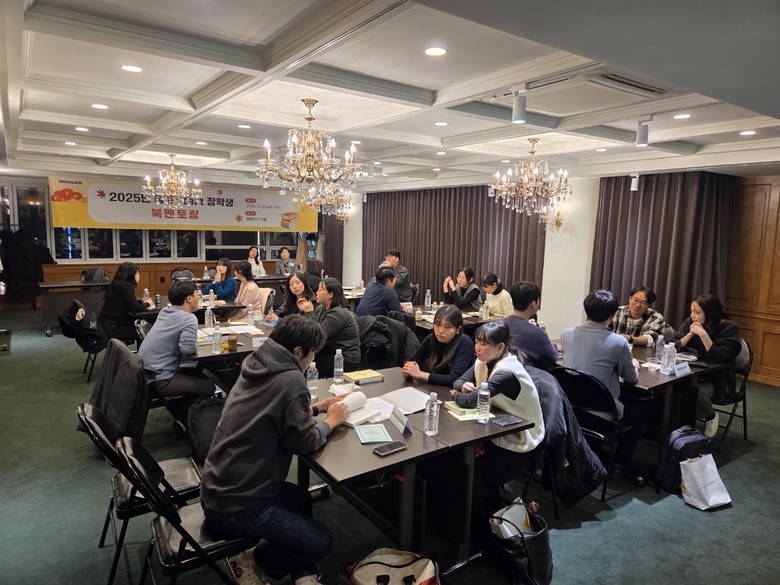 [서울 세계타임즈=이장성 기자] 서울장학재단(이하 재단)은 지난 11월 21일(금) 저녁 7시, 서울 종로구 일대에서 ㈜두산과 함께하는 ‘청춘Start 장학생 북멘토링’을 개최했다. 이날 행사에는 ㈜두산 임직원 멘토와 ‘청춘Start’ 3기부터 13기 장학생 등 총 18명이 참석해 책을 매개로 한 멘토링 프로그램을 진행했다.