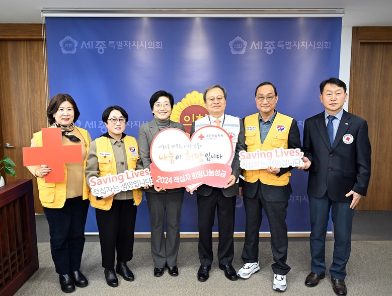[세종 세계타임즈=이채봉 기자] 세종특별자치시의회(의장 이순열)는 13일 의장 집무실에서「2024년 희망나눔 기빙클럽 나눔 캠페인」성금 전달식을 열고 대한적십자 희망나눔 모금에 성금을 기탁했다. 또한 지난 11월 29일 진행된 크리스마스 씰 전달식 의미에 맞춰 대한결핵협회에도 모금을 기탁했다.