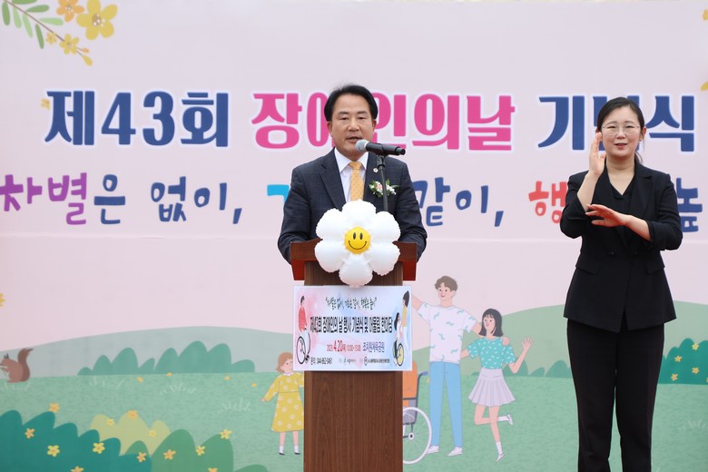 [세종 세계타임즈=이채봉 기자] 상병헌 세종시의회 의장은 20일 ‘제43회 장애인의 날 기념행사’에 참석해 장애인의 어려움을 경청하고 격려하는 시간을 가졌다.