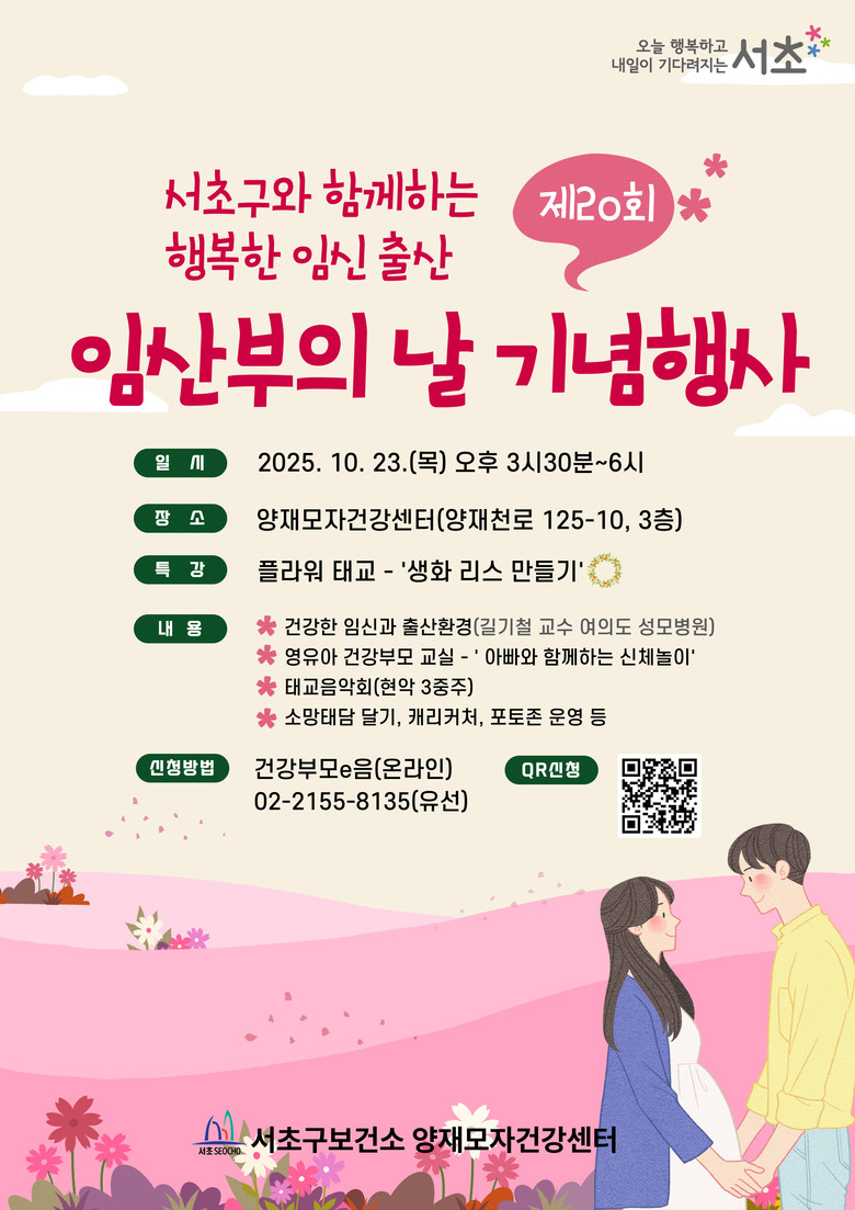 전성수 서초구청장은 “이번 기념행사를 통해 양재모자건강센터가 임신·출산뿐만 아니라 가족의 건강한 삶을 지원하는 지역 건강문화 거점으로 자리매김할 수 있도록 맞춤형 서비스를 지속 확대해 나가겠다.”고 밝혔다.