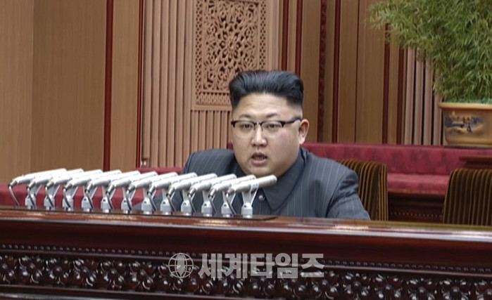 북한 조선중앙TV는 김정은 노동당 위원장이 평양 만수대의사당에서 열린 대륙간탄도미사일(ICBM)급의 화성-14형 시험발사에 관여한 과학자와 기술자들에 대한 국가표창 수여식에 참석했다고 13일 보도했다. 김정은 위원장은 이 자리에서 축하연설을 마친 후 화성-14형 시험발사에 기여한 과학자와 기술자들에게 김일성훈장, 김정일훈장, 영웅칭호와 금별메달 및 국기훈장, 시계표창 등을 직접 수여했다. 2017.07.13. (사진=조선중앙TV 캡쳐)