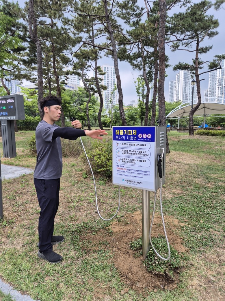 시는 시민들의 야외활동 빈도를 고려해 새롬동 가득뜰 근린공원과 대평동 금강수변, 종촌동 제천뜰 근린공원 등 3곳에 분사기를 설치했다.