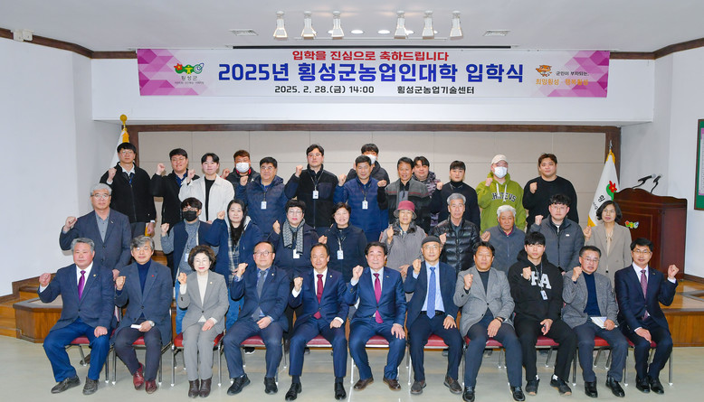 [횡성군 세계타임즈=김민석 기자] 횡성군농업인대학(학장, 군수 김명기)은 28일 오후 2시 농업기술센터 대강당에서 2025년 횡성군농업인대학 입학식을 열었다.