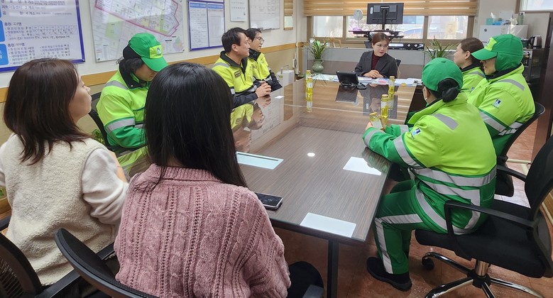 이날 참석자들은 생활폐기물 수거 전반에 대한 현장 의견을 비롯해 골목길 및 취약지역에서 발생하는 주민 불편사항과 민원 유형, 지역 특성에 따른 근로자의 어려움 등에 대해 논의했다.