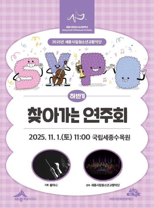 세종시립청소년교향악단 관계자는 “찾아가는 연주회를 통해 가을의 정취가 물든 수목원 축제마당에서 자연과 음악이 어우러지는 특별한 순간을 함께 느껴보시길 바란다”라고 말했다.
