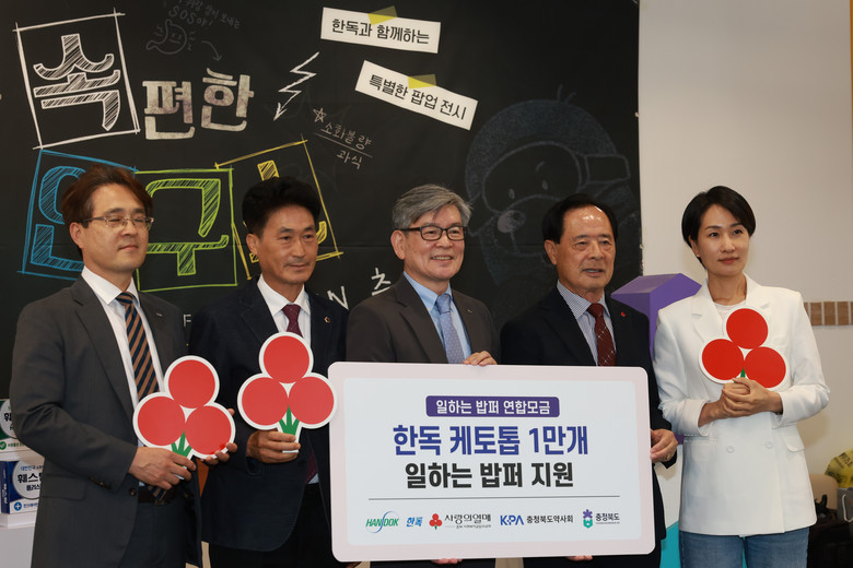 두 번째, 협약은 ‘일하는 밥퍼’ 참여자에 대한 의약품 기부협약이다. 충북도, ㈜한독, 충청북도약사회(회장 박상복), 충북사회복지공동모금회(회장 이민성)간의 이번 협약으로 향후 ㈜한독이 기부한 케토톱(근육관절 통증 파스)은 충북사회복지공동모금회를 거쳐 충청북도약사회에서 ‘일하는 밥퍼’ 사업장에 의료봉사를 하는 과정에서 참여 어르신들에게 제공된다. ‘일하는 밥퍼’ 사업은 60세 이상 노인과 사회참여 취약계층이 생산적 자원봉사에 참여함으로써 자존감을 회복하고, 지역사회의 일손 부족 문제를 해결하는 충청북도의 혁신적인 노인복지 정책이다.