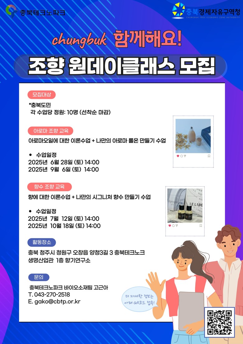 이번 프로그램은 전문 조향 강사를 초청해, 도민들이 향료에 대한 이론과 실습을 바탕으로 나만의 향을 직접 만들어보는 체험 중심 교육으로 구성됐다. 충북도민 누구나 무료로 참여할 수 있어 접근성을 높였다는 점도 특징이다.