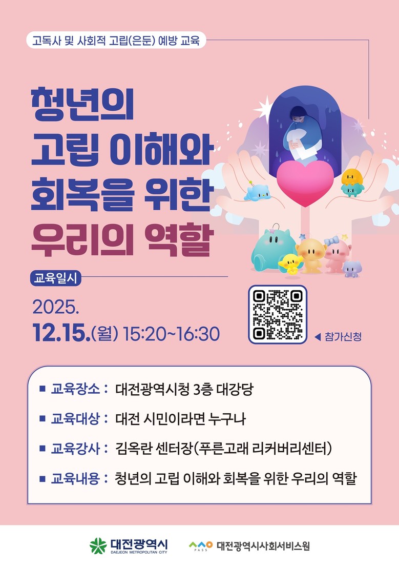 대전시는 1인 가구 비율이 2025년 11월 기준 44%로 매우 높은 도시 구조로 사회적 고립.은둔 문제에 선제적으로 대응하는 것이 중요한 과제로 부상하고 있다.