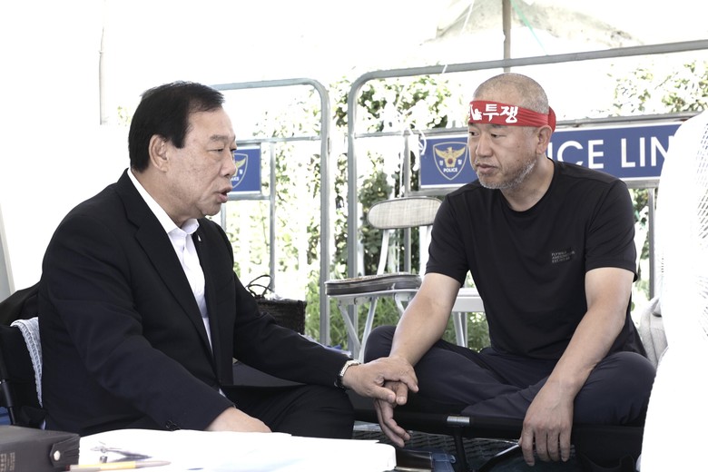 최민호 시장은 이날 국가공무원노조 해수부지부 윤병철 노조위원장을 방문한 자리에서 가장 먼저 무더위 속에서 이어지는 단식으로 인해 건강을 잃을 수 있다고 우려했다.
