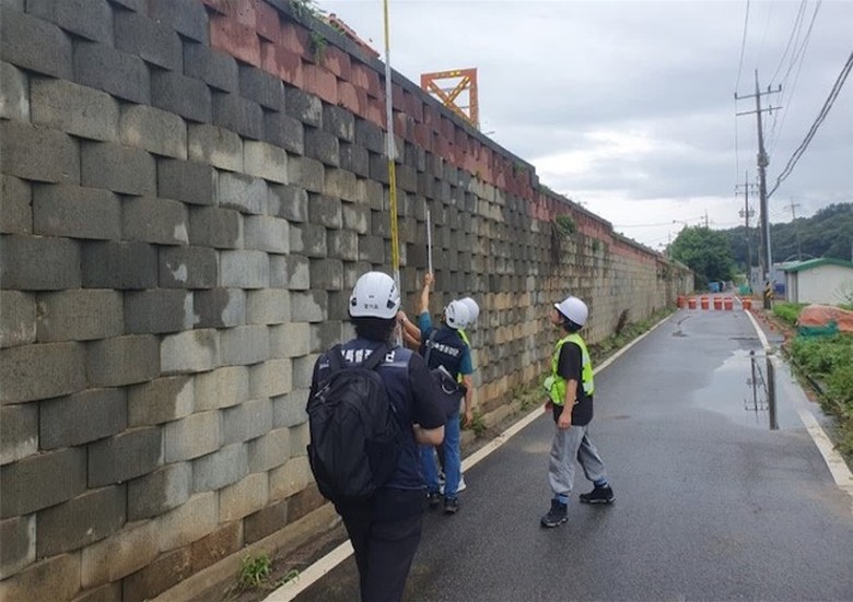 B시의 경우는 도로변 보강토옹벽의 전도 및 도로상부 균열이 발생했다고 안전예방핫라인에 접수됐다. 안전점검 결과 허용 기울기가 초과되고 상부도로에 인장균열이 다수 확인돼 집중호우시 옹벽 추가 전도 우려가 있었다. 이에 따라 해당 시에서 하부도로를 통제하고 옹벽을 보강해 안전조치를 진행하도록 컨설팅했다.