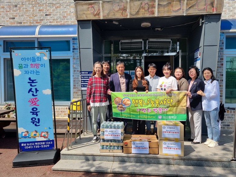 이번 봉사활동은 교육복지우선지원사업과 연계한 활동으로 학부모회 행복나눔봉사단은 아침 일찍부터 빵을 구워 논산애육원에 방문했다. 이후 오후에는 체육대회 열기로 가득찬 논산중학교 교정을 찾아 학생들에게 전달했다.