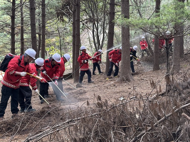 훈련에서는 산불 발생 시 초기 대응과 진화 기본요령, 장비 운용법 등을 숙지하는 한편, 대형·초고속 산불에 대비한 방어선 구축과 주민 대피 요령 등을 중점적으로 다뤘다.