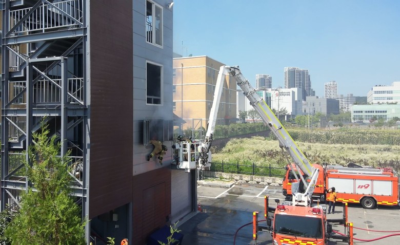 20여 명의 대원들은 소형굴절차와 중형펌프차, 물탱크차 각 1대씩을 운용하며 연소 확대 방지, 수관 연장 및 내부 진입을 통한 화재 진압, 비상탈출, 바스켓 인명구조, 지붕 파괴 수직 배연 등 실전 중심의 전술 훈련을 펼쳤다.
