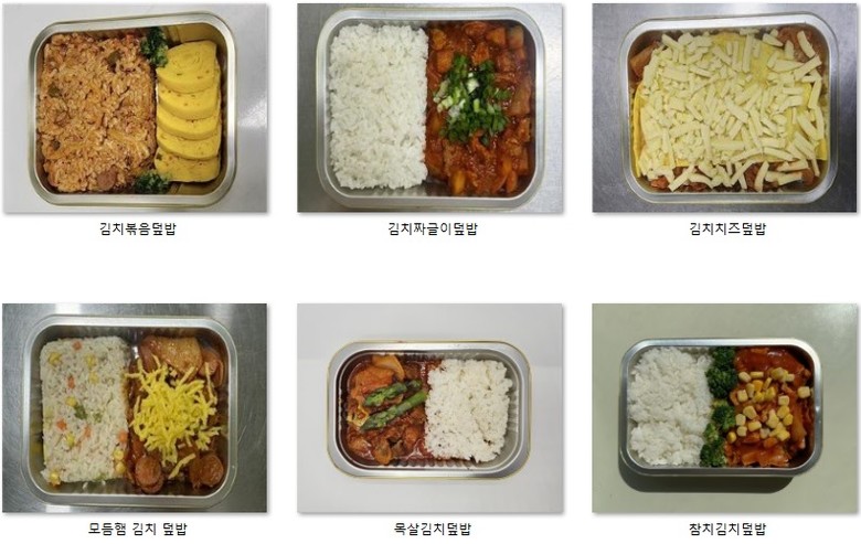 기내식으로 제공되는 ‘어쩌다 못난이 김치’ 활용 메뉴는 다음과 같다. 목살김치덮밥, 참치김치덮밥, 김치치즈덮밥, 김치볶음덮밥, 김치짜글이덮밥, 모듬햄김치덮밥이 있으며 이 외에도 지속적으로 다양한 메뉴를 개발해 나갈 예정이다.