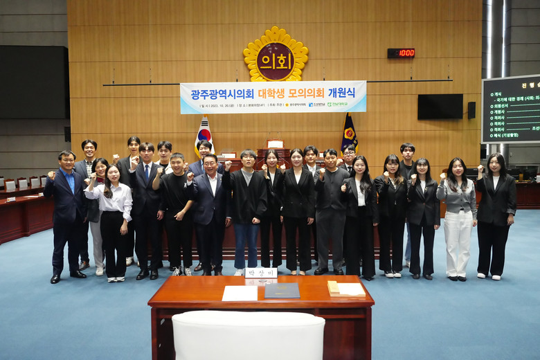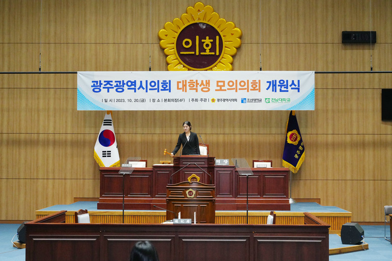 [광주 세계타임즈=손권일 기자] 광주광역시의회(의장 정무창)는 10월 20일(금), 조선대학교·전남대학교와 공동으로 대학생 모의의회 개원식을 개최했다.