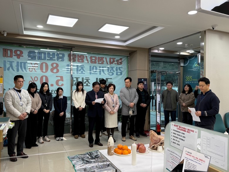 | ▲입춘 맞아 금융사무실 고사 진행 모습.(사진=용인시산림조합) |
