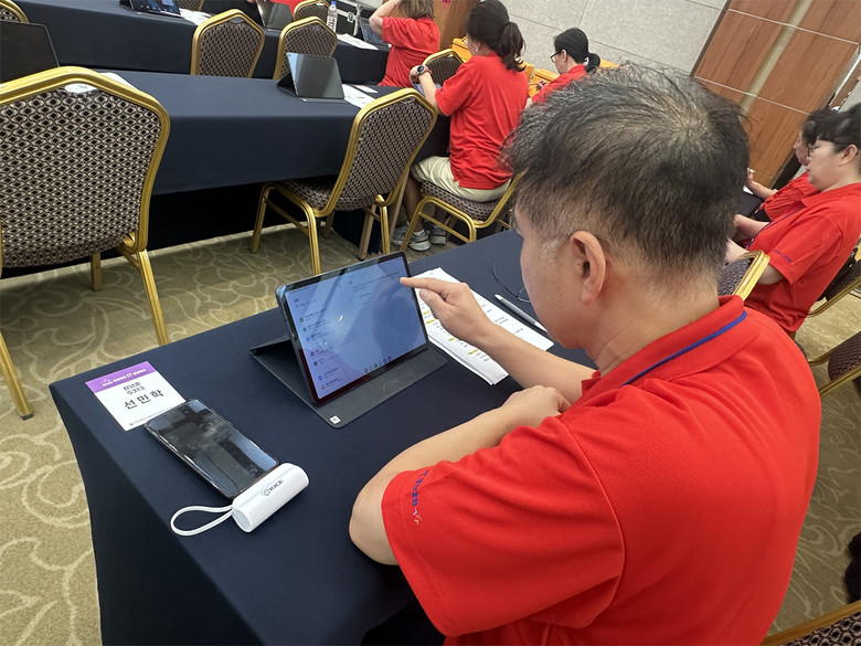 | ▲ 본선 대회에서 스마트 패드를 활용해 문제를 풀고 있는 선민학 씨(금상) |