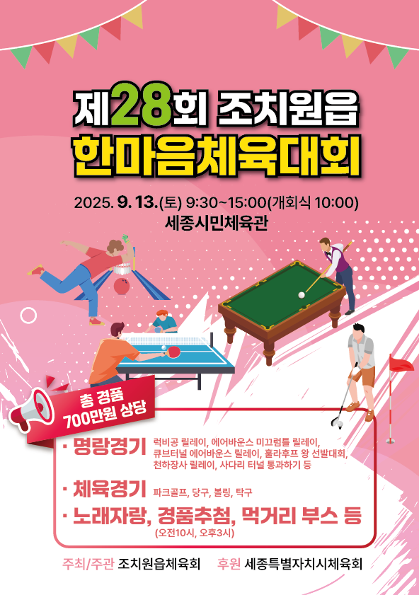 김병호 조치원읍체육회장은 “한마음 체육대회를 통해 주민들이 일상의 피로를 잊고 웃음과 활력을 나누길 바란다”며 “주민 여러분의 많은 관심과 참여를 부탁드린다”고 전했다.