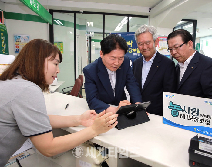 [세계타임즈 김장수 기자]김병원 농협중앙회장이 26일(월) 오후 충북 음성군 삼성농협을 찾아 ‘농업인 특화 보험’인 「농사랑NH보장보험(무)」에 가입했다.