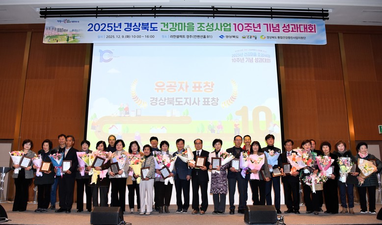 - 22개 시군, 32개 건강마을 참여...주민주도 건강공동체 확산 다짐 - [경북 세계타임즈=한윤석 기자] 경상북도는 9일 경주 라한셀렉트호텔 컨벤션 홀에서 32개 건강마을 주민과 시군 보건소 관계자와 경상북도 통합건강증진사업지원단 교수 등 600여 명이 참석한 가운데 ‘2025년 건강마을 조성사업 10주년 기념 성과대회’를 개최했다.