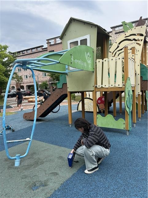 이번 검사는 도시공원 내 어린이놀이시설을 대상으로 하였으며, XRF(엑스선형광분석기)를 이용해 바닥재 색상마다 중금속(납, 카드뮴, 수은, 6가크로뮴)을 측정하였다.