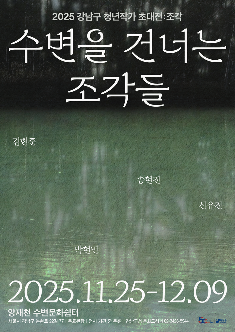 이번 전시는 청년 예술가들이 대중과 소통할 기회를 넓히고, 조형예술의 실험성과 예술적 다양성을 지역사회와 공유하고자 기획됐다. 2025 강남구 신진작가 지원전에서 최우수상을 수상한 김한준 작가를 비롯해 박현민, 송현진, 신유진 등 4명의 젊은 조각가들이 ‘수변(水邊)’이라는 주제를 통해 흐름과 변화, 머무름과 순환이 공존하는 경계의 미학을 작품으로 옮겼다.