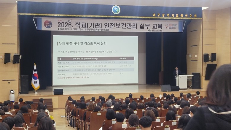 한편, 대구시교육청은 3월 20일(금) 대구교육연수원에서 안내서를 활용한 ‘상반기 안전보건관리 실무 교육’을 실시한다. 오전 9시에는 사립학교 안전보건관계자와 안전관리 전문기관 컨설턴트를 대상으로, 오후 1시 30분부터는 공립학교(기관) 안전보건관계자를 대상으로 각각 교육을 진행한다.