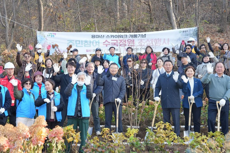 개통식은 13일 오후 류경기 중랑구청장과 지역 주민 50여 명이 참석한 가운데 진행됐으며, 행사와 함께 ‘365일 식목일 나무심기’가 열려 수국 5개 품종과 배롱나무 등 650주의 나무를 심어 스카이워크 인근 정원을 더욱 풍성하게 채웠다. 이 공간은 앞으로 중랑구를 대표하는 수국 명소로 발전할 것으로 기대된다.