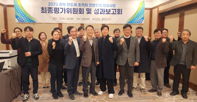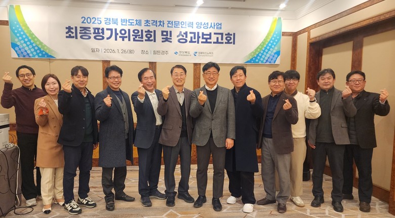 경상북도는 1월 26일 경주 힐튼호텔에서 경북테크노파크, 참여 대학 및 기업 관계자 등 30명이 참석한 가운데 ‘2025 경북 반도체 초격차 전문인력 양성사업 최종평가 및 성과공유회’를 개최했다.