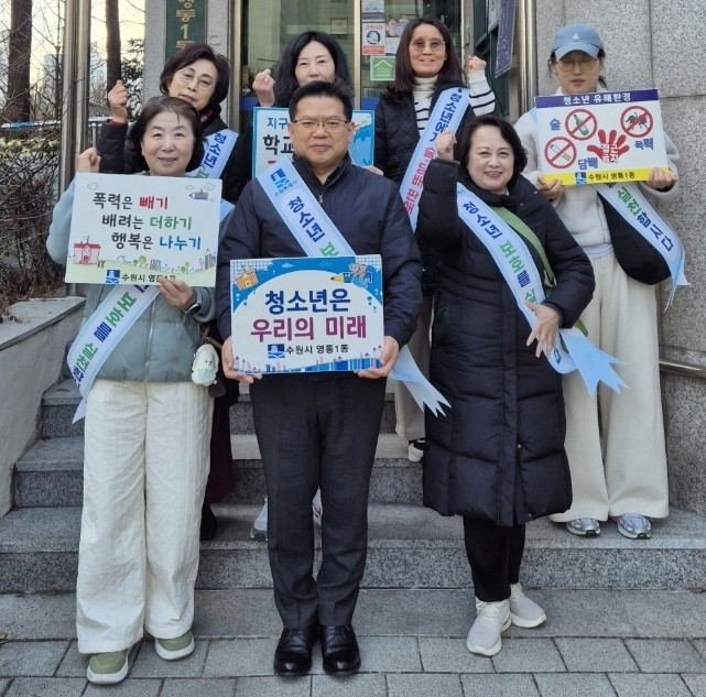 [수원시 세계타임즈=송민수 기자] 수원시 영통구 영통1동(동장 신한길)은 지난 12일 새학기를 맞아 청소년들이 건전한 환경에서 생활할 수 있도록 청소년 지도위원과 맞춤형 복지팀 직원들이 함께 청소년 유해환경 캠페인을 실시했다고 밝혔다.