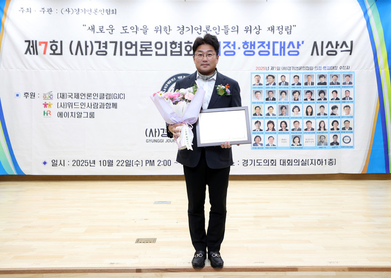 이번 시상은 사단법인 경기언론인협회가 주최한 행사로, 도민의 안전과 복지 증진, 지역 상생 협력, 시정 현안에 대한 충실한 견제와 대안 제시 등 지역사회 발전에 헌신한 지방의원, 지자체장들의 공로를 격려하기 위해 마련된 자리다.