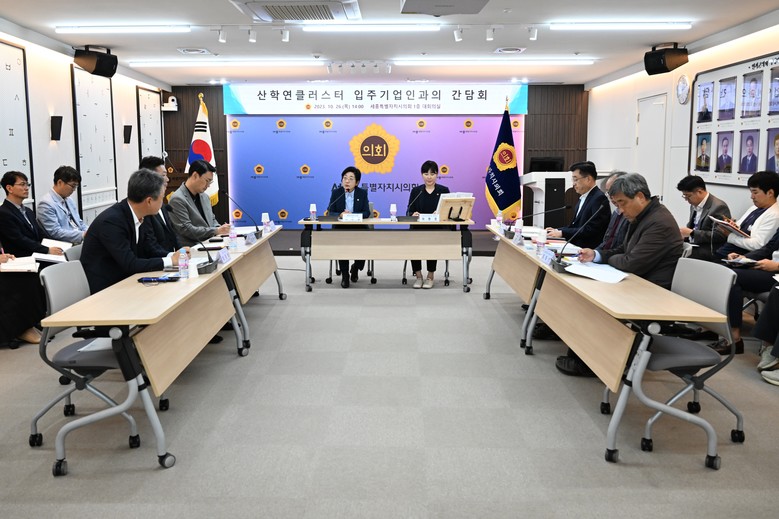 [세종 세계타임즈=이채봉 기자] 세종특별자치시의회(의장 이순열) 산업건설위원회(위원장 이현정)는 26일 의회 청사 대회의실에서 산학연클러스터 지원센터 입주기업인과의 소통을 통해 다양한 애로사항을 청취하고, 개선 방안 등을 논의하기 위해 간담회를 개최했다.