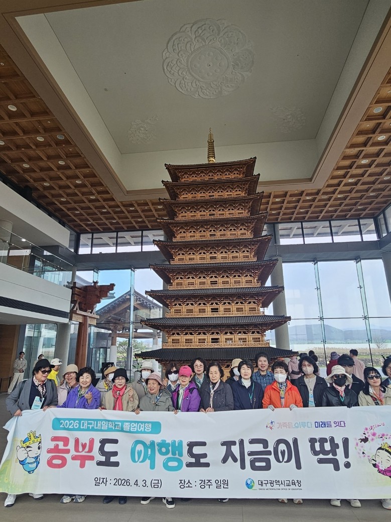 [대구 세계타임즈=한윤석 기자] 대구시교육청은 4월 3일(금) 학력인정 문해교육 프로그램 ‘대구내일학교’ 중학과정 3단계 성인 학습자 59명을 대상으로 경주 일대에서 졸업여행을 실시했다.