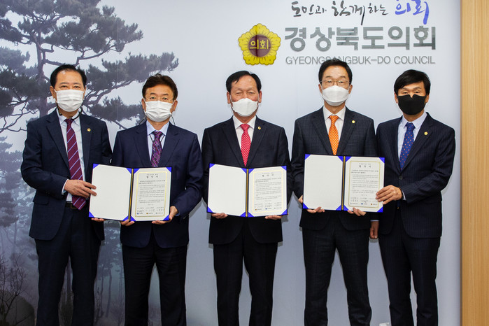 [경북=세계타임즈 한성국 기자] 경북도의회(의장 고우현)는 11월 6일(금) 도의회 의장실에서 이철우 도지사, 임종식 교육감이 참석한 가운데 고교 전면 무상급식 조기 실시에 따른 관련 협약을 체결했다.