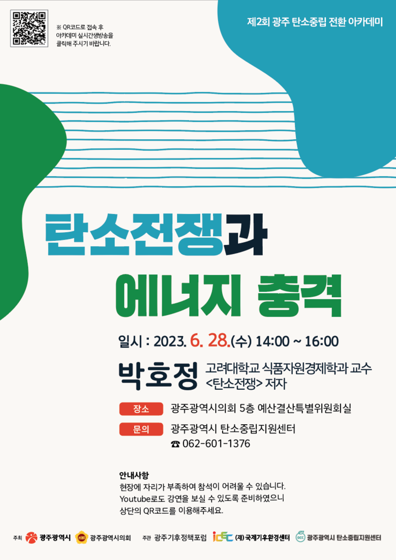 한편 광주 탄소중립 전환 아카데미는 광주기후정책포럼과 국제기후환경센터 및 광주광역시 탄소중립지원센터가 공동주관해 진행된다.
