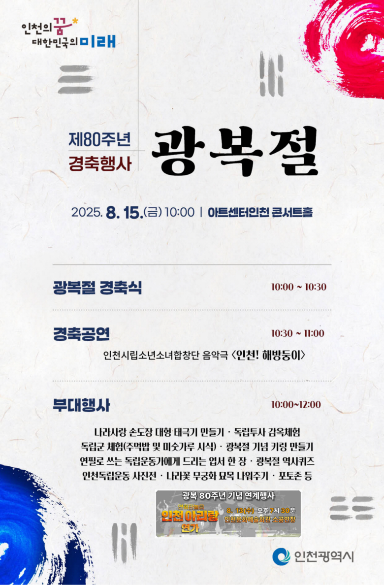 아울러 인천시는 광복 80주년을 기념해 다양한 연계 행사도 함께 진행한다.