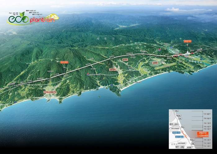 이번 기술형 입찰은 가중치기준 방식으로 설계대 가격점수 비중이 70대 30인만큼 설계 기술력이 무엇보다 중요했다. 이번 수주에 대해 SK에코플랜트 관계자는 “터널 입출구부를 18개소에서 8개소로 축소해 비탈면을 최소화하는 등 친환경 철도노선 설계에 심혈을 기울였다”며 “당초 기본계획 노선이 집단 거주지 및 골프장, 관광단지 등을 직접 통과했으나, 이를 우회하는 대안노선을 채택해 근본적인 해결방안을 제시한 것이 좋은 점수를 받게 됐다”고 설명했다.